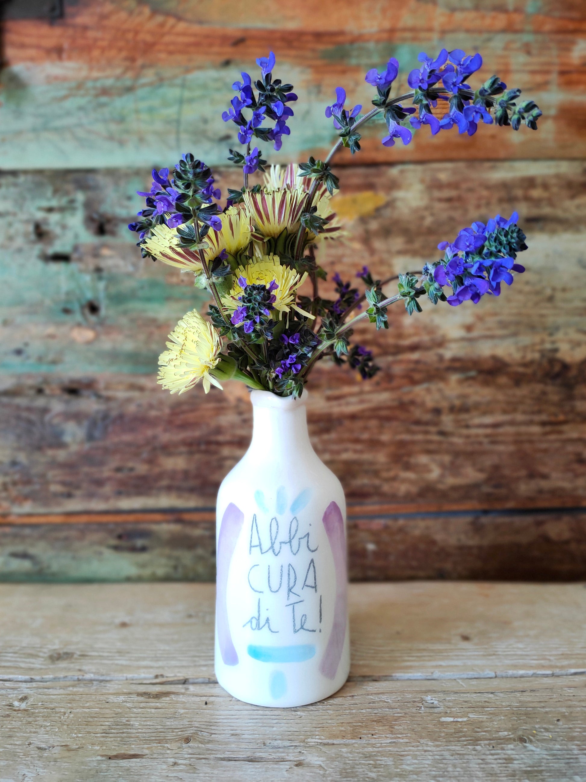 Bottiglietta in Ceramica Dipinta a Mano "Abbi Cura di Te"