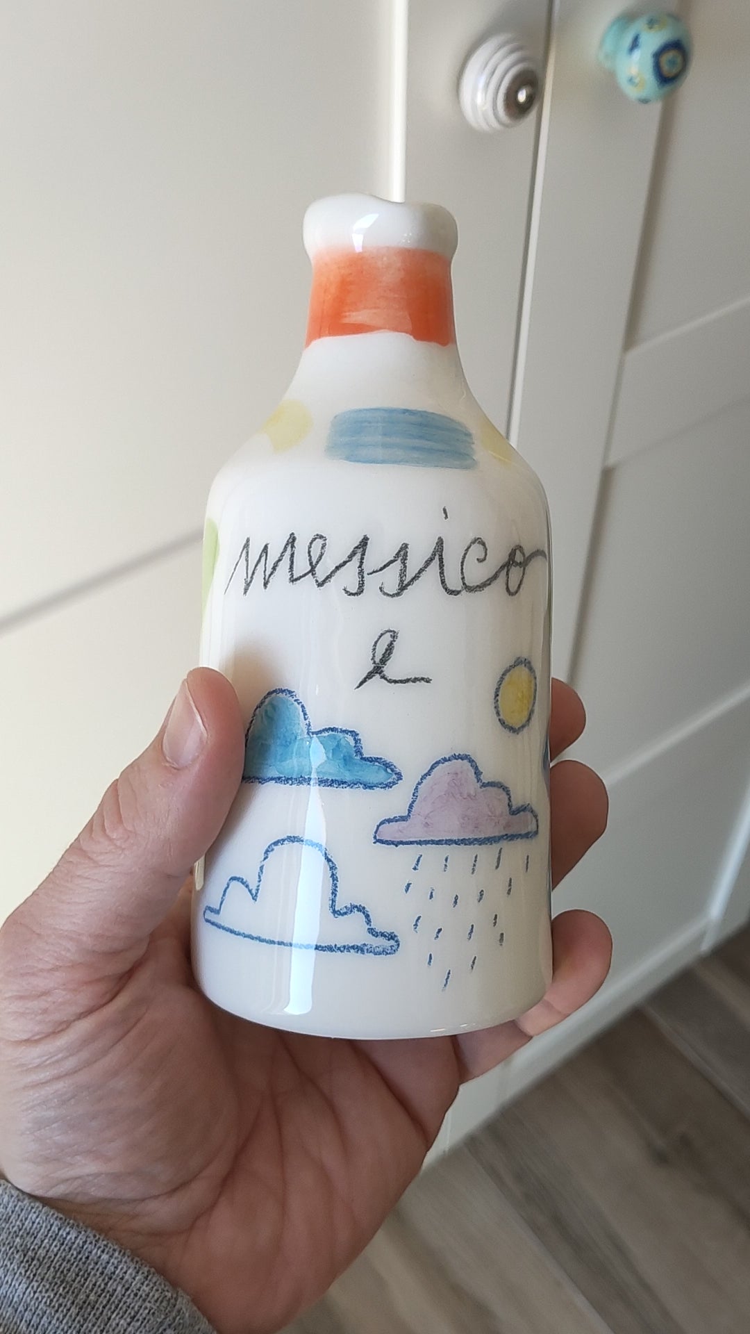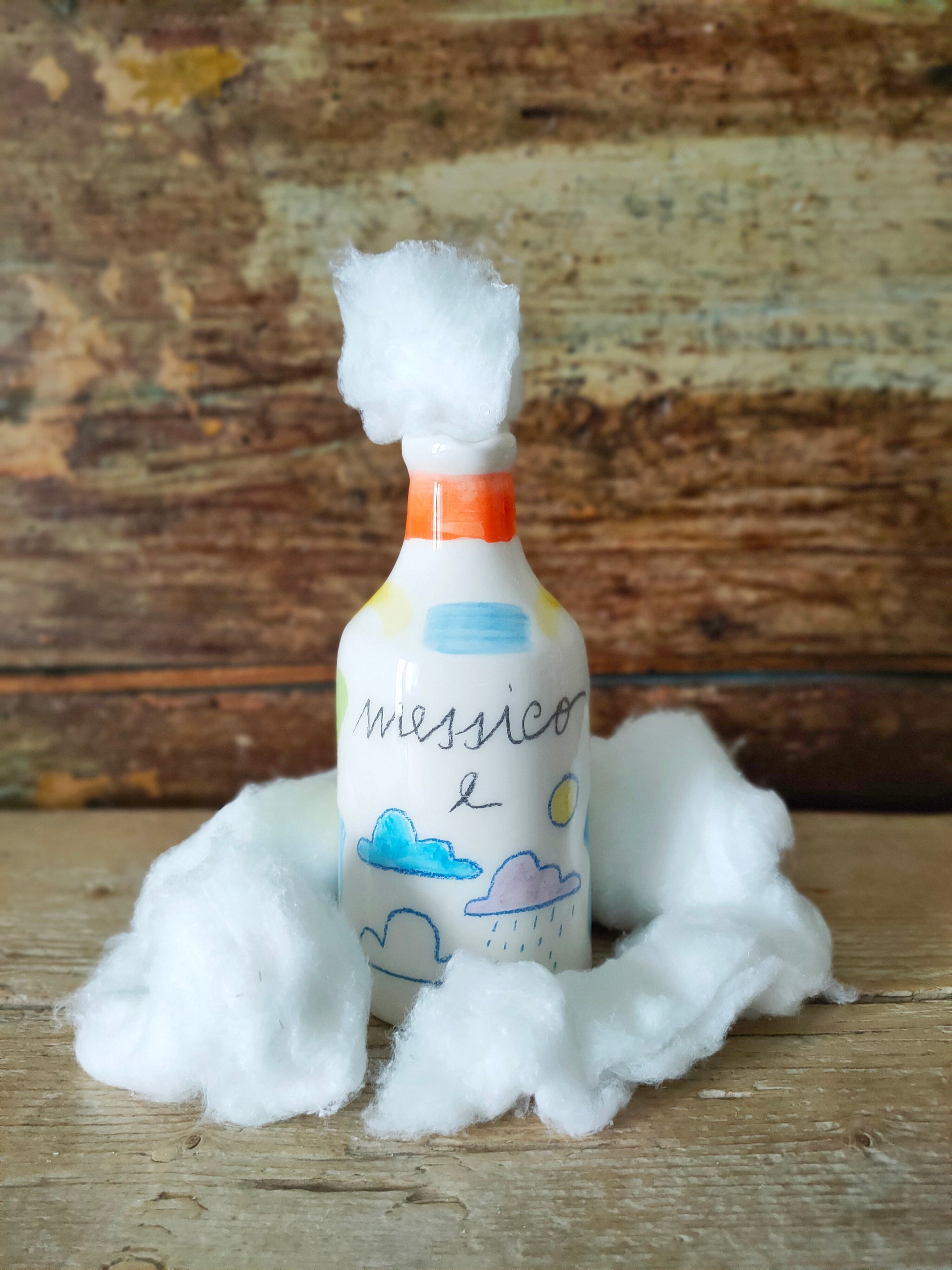 Bottiglietta in Ceramica Dipinta a Mano "Messico e Nuvole"