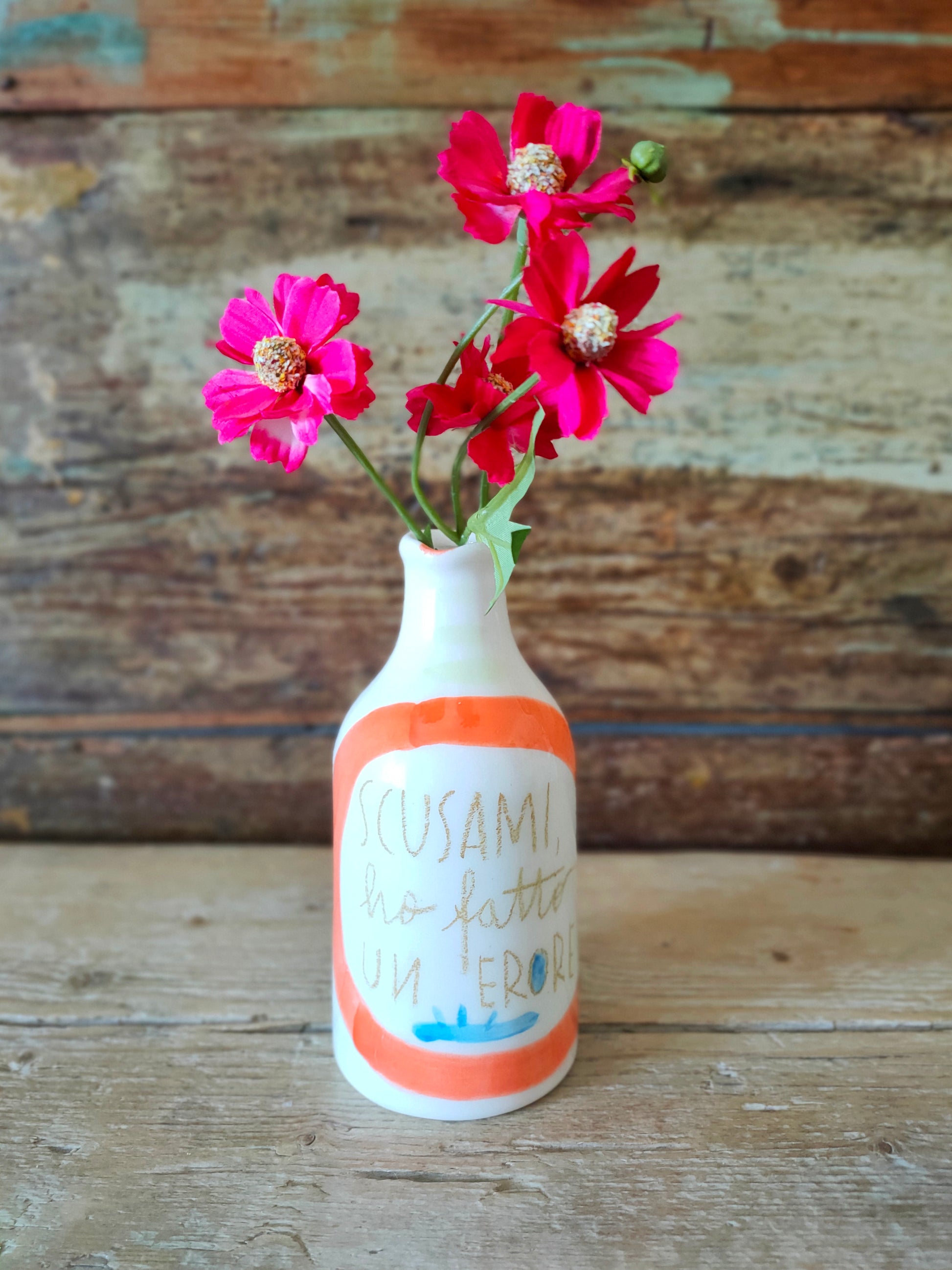 Bottiglietta in Ceramica Dipinta a Mano "Scusami ho fatto un Erore!"
