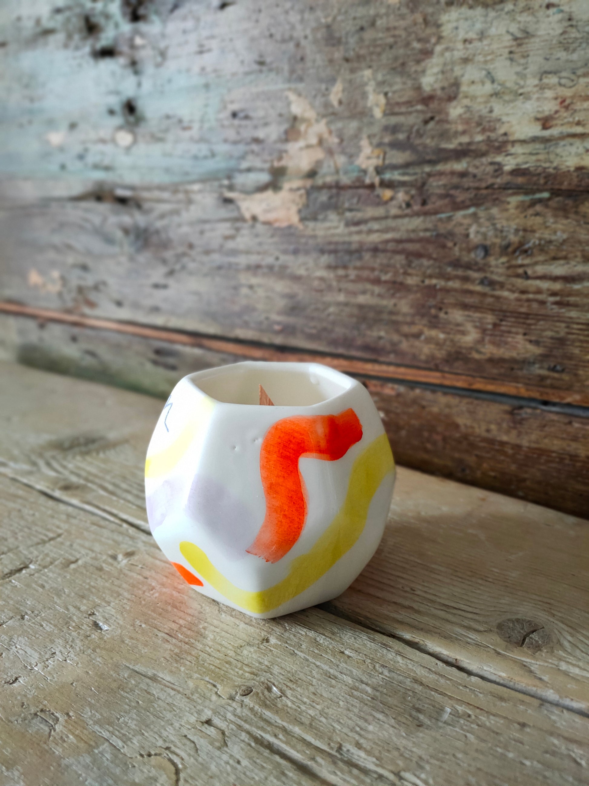 Il vasetto pentagonale è alto circa 9,5 cm e largo circa 10,5 cm.