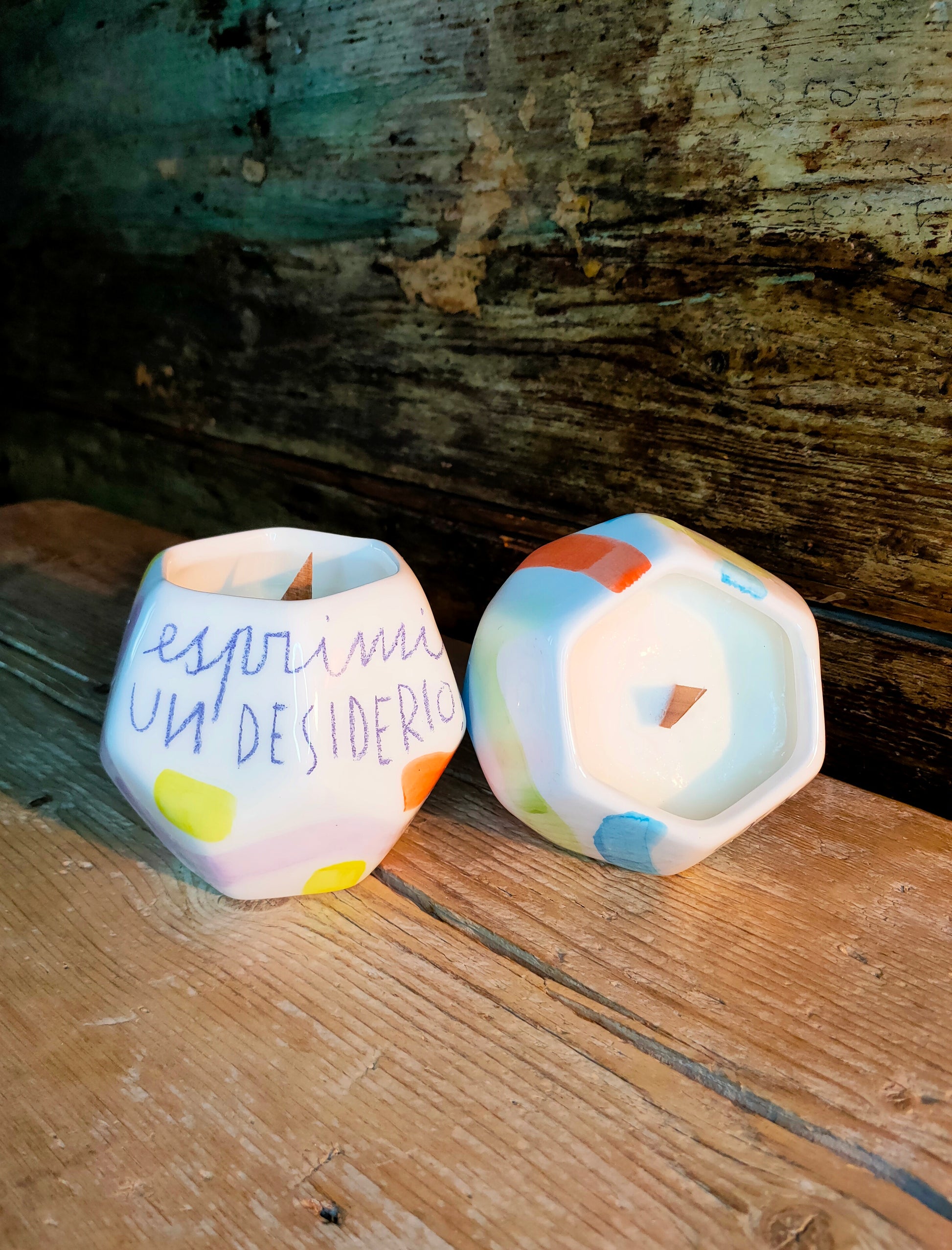 Inoltre sono create con cera di soia biologica, rispettosa dell'ambiente e della tua pazienza! Una volta finita infatti, i nostri porta-candele in ceramica si possono ripulire solamente con un po' d'acqua, per togliere ogni residuo di cera.