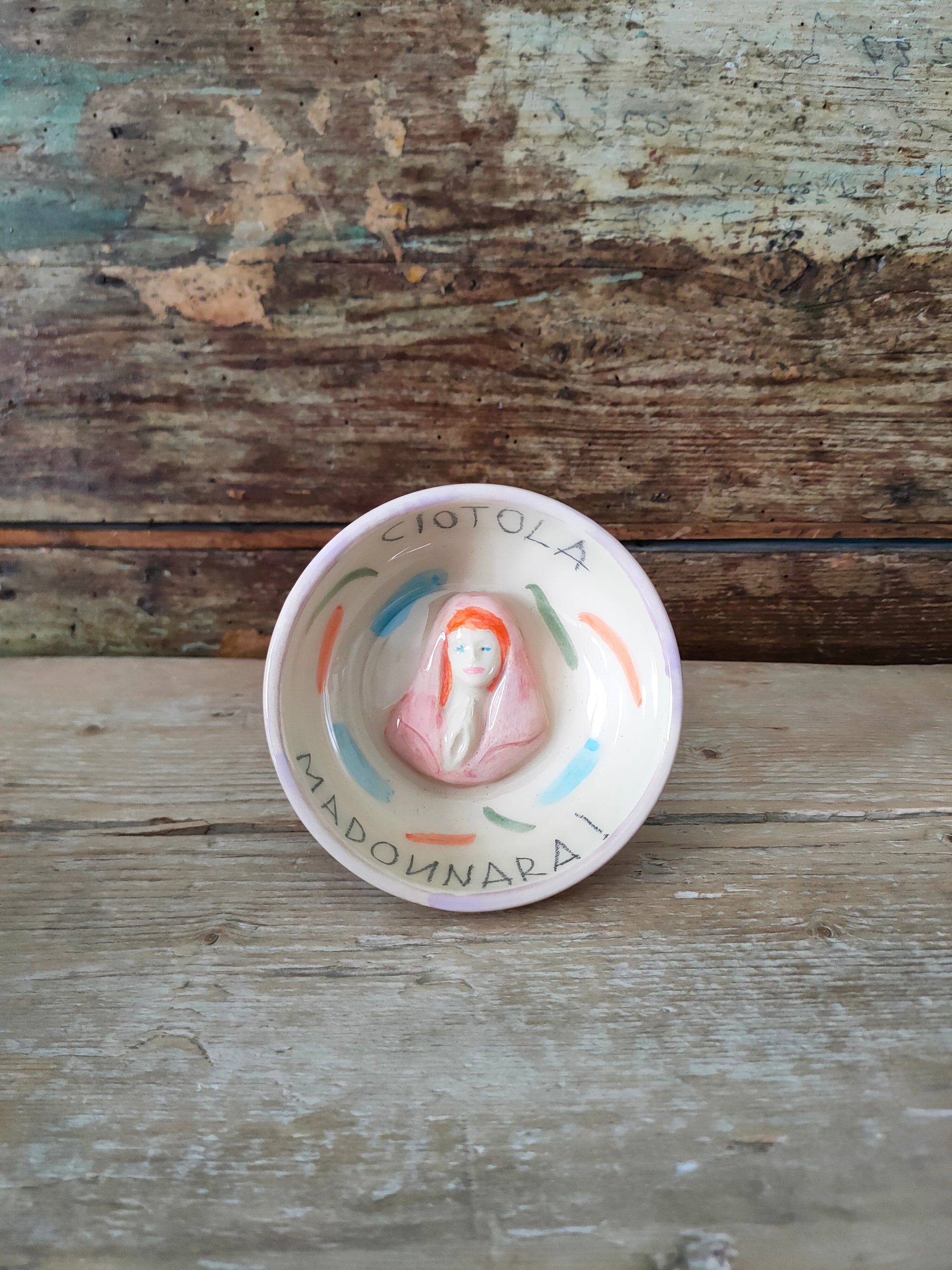 Ciotolina Bassorilievo in Terracotta "Ciotola Madonnara" viola, rosa, arancione.