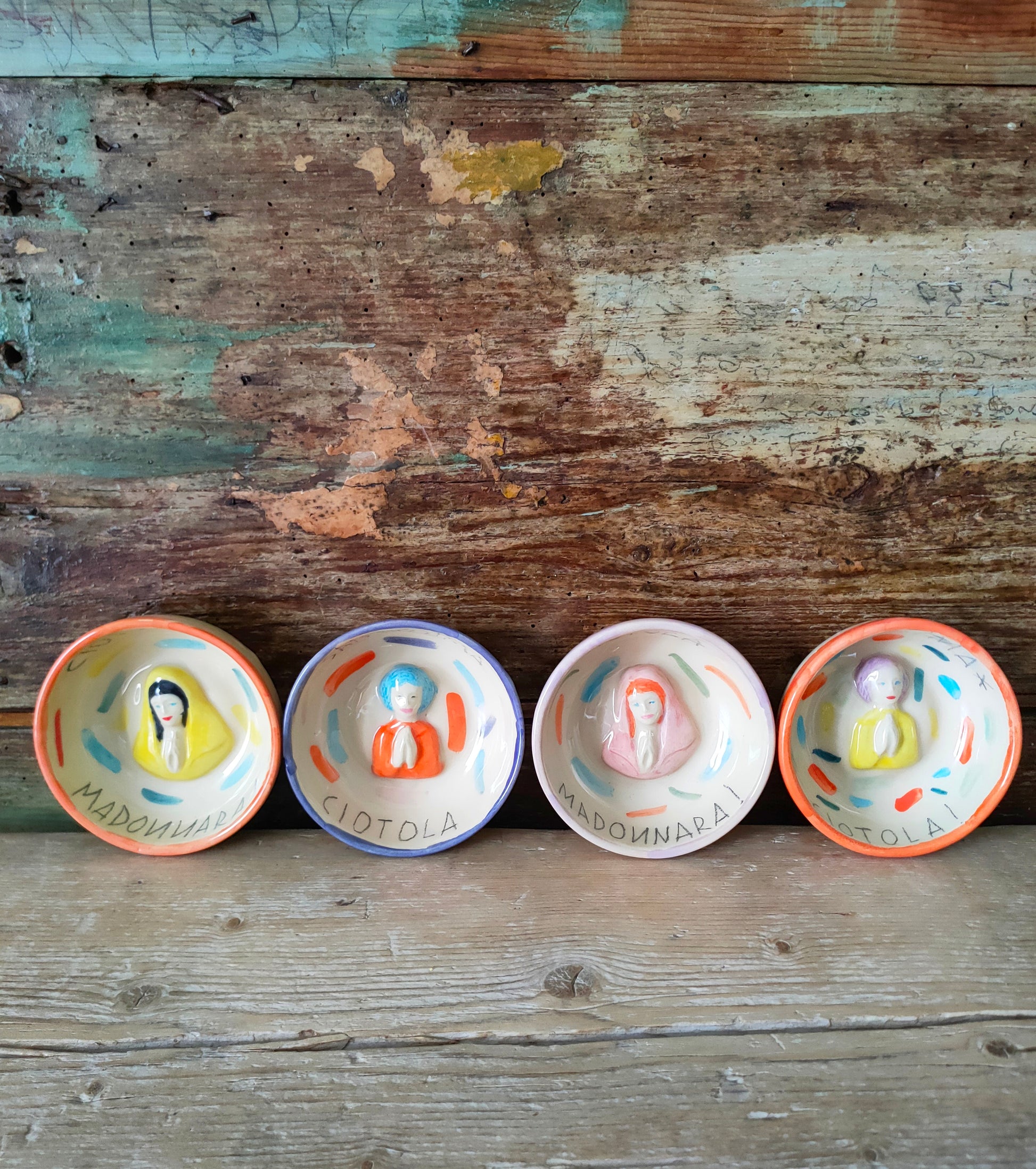 Questa ciotola è un residuo vintage di un vecchio laboratorio ceramico e veniva utilizzata come icona religiosa. Noi l'abbiamo presa e l'abbiamo decorata a modo nostro per utilizzarla a modo vostro!