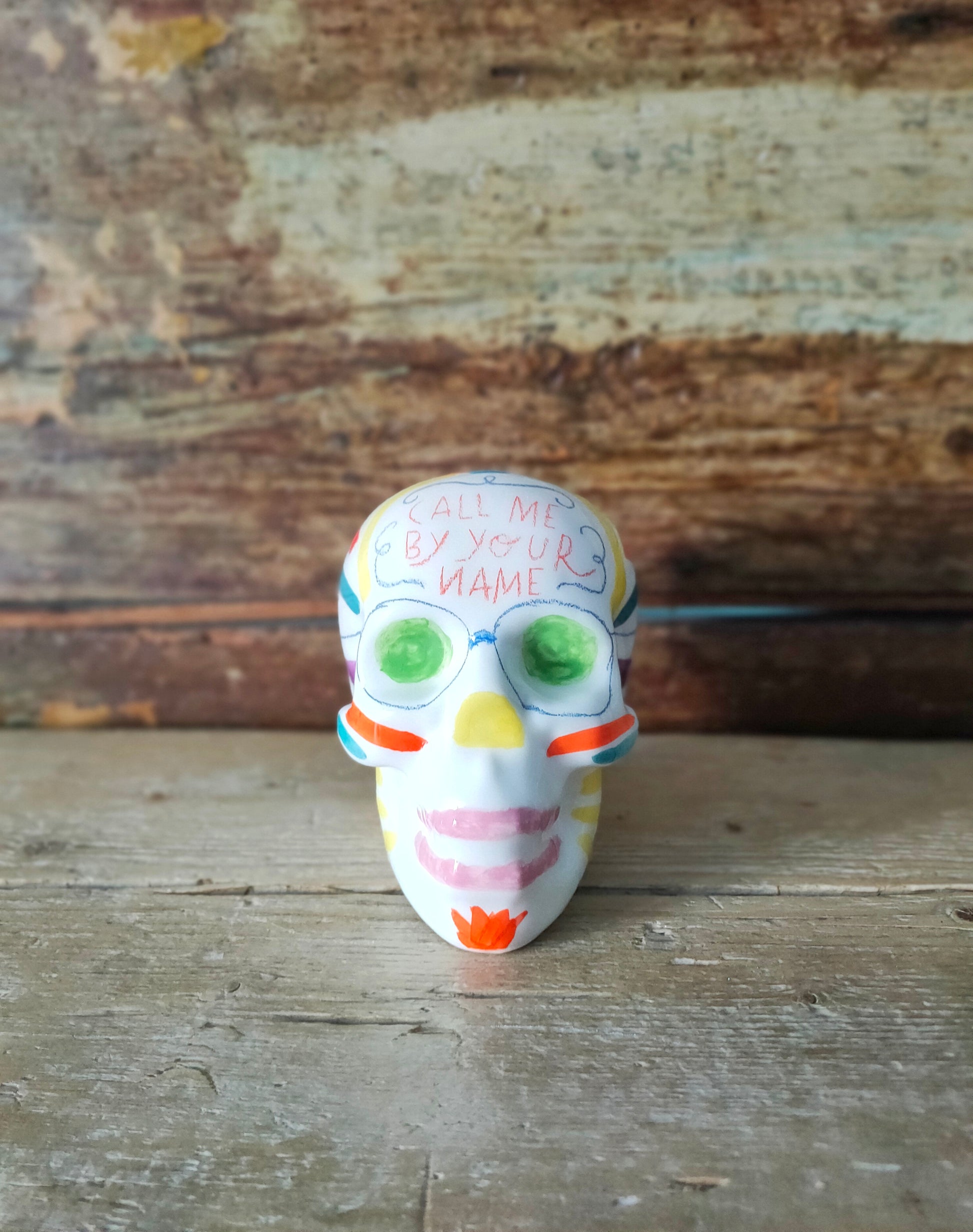 Teschio In ceramica Dipinta a Mano "Call Me By Your Name"