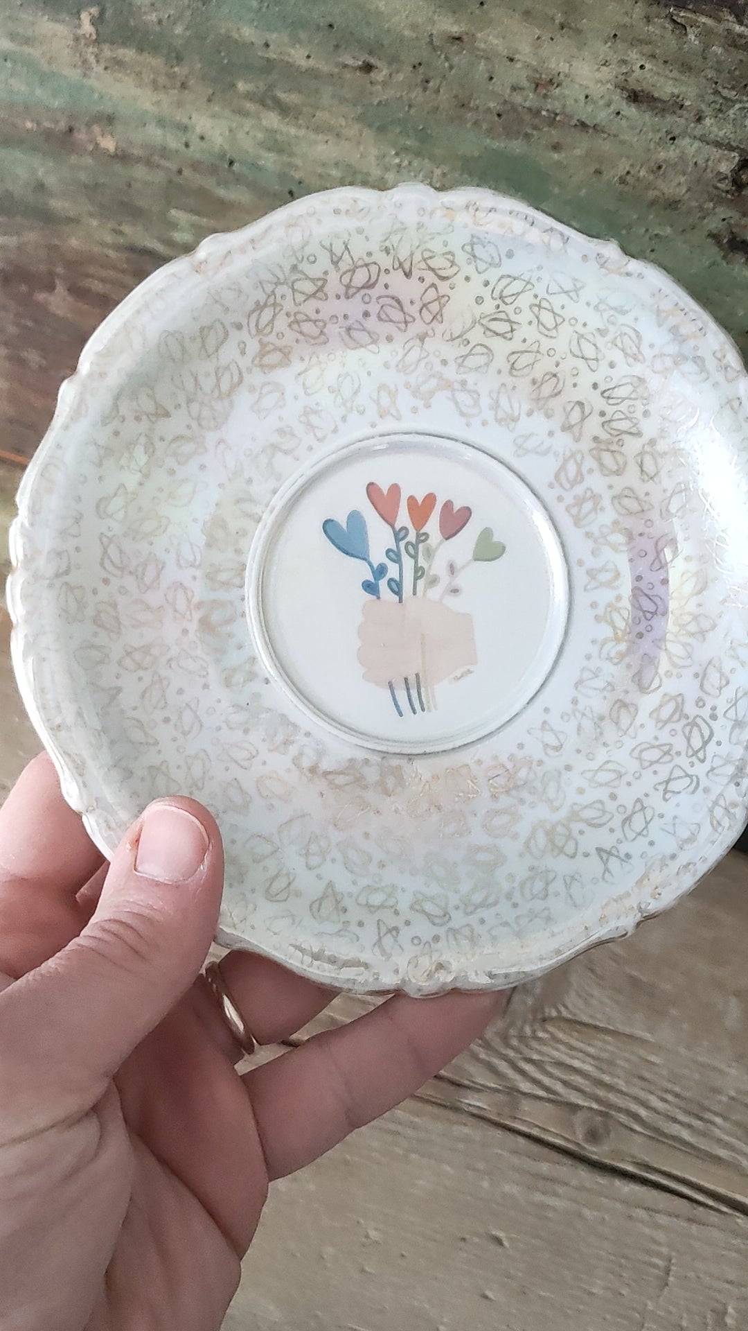 "Fiori Cuori" su Piattino Fantasia Cangiante