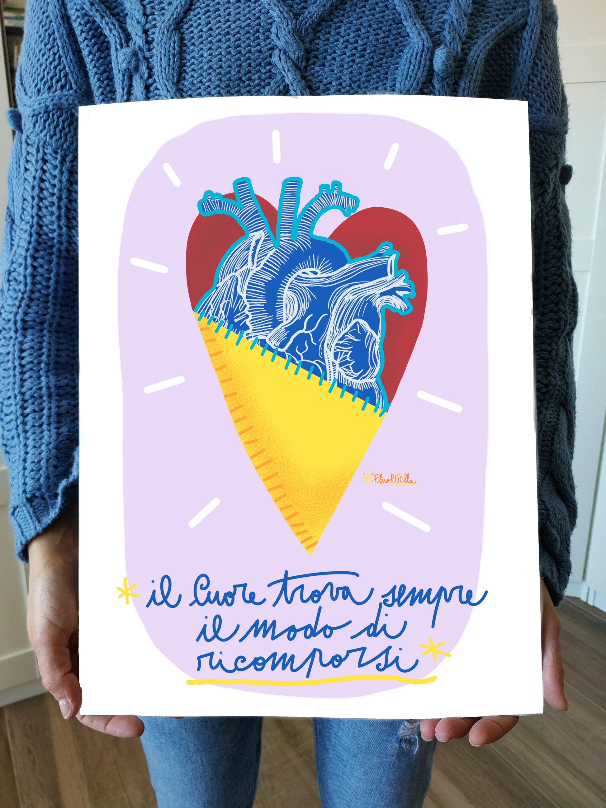 "Il Cuore è Eterno" Stampa formato A3 (29,7 X 42 CM) su Carta Pregiata Martellata