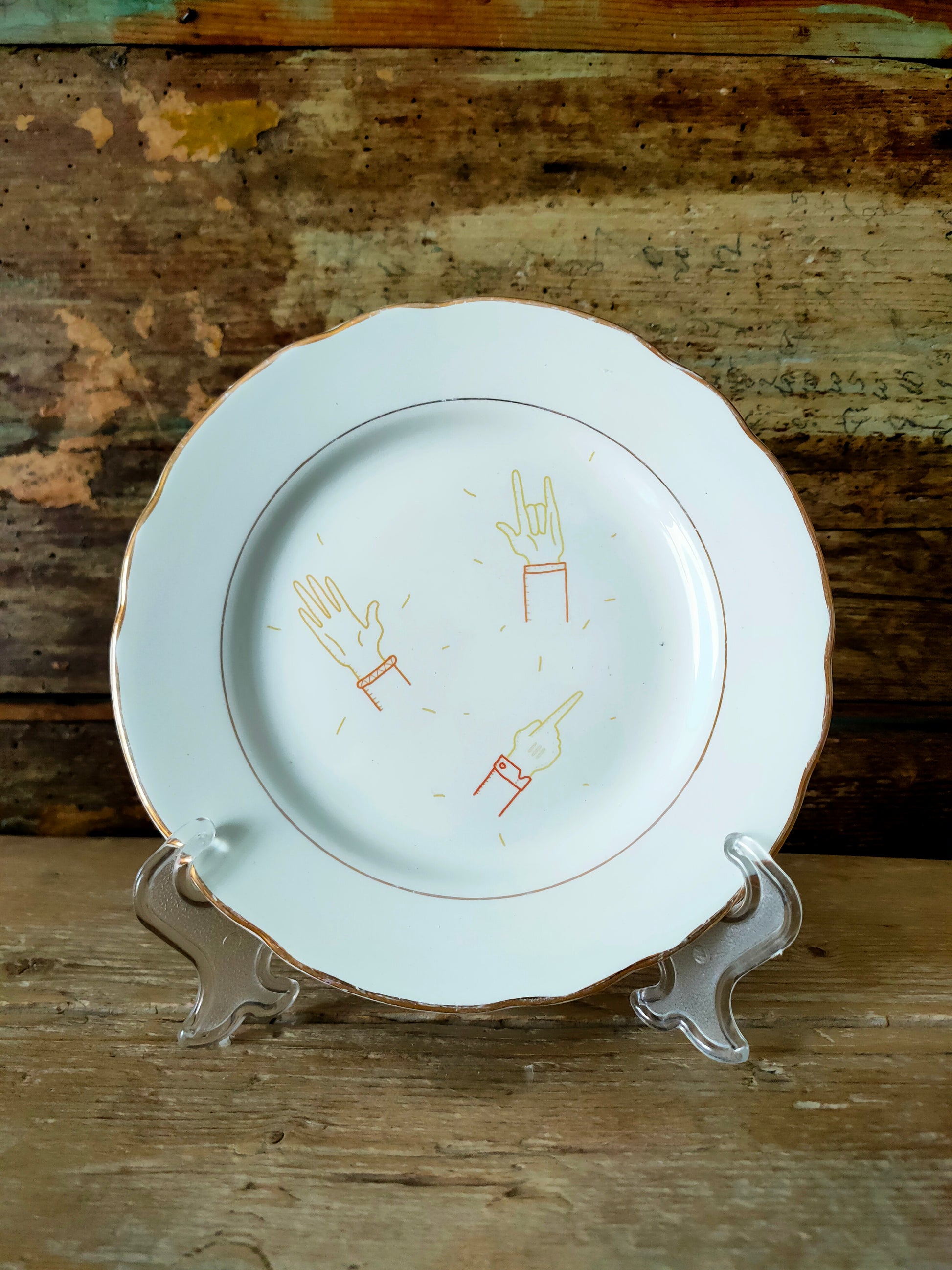 Piatto "Mani che Fanno Gesti" con Bordo Dorato