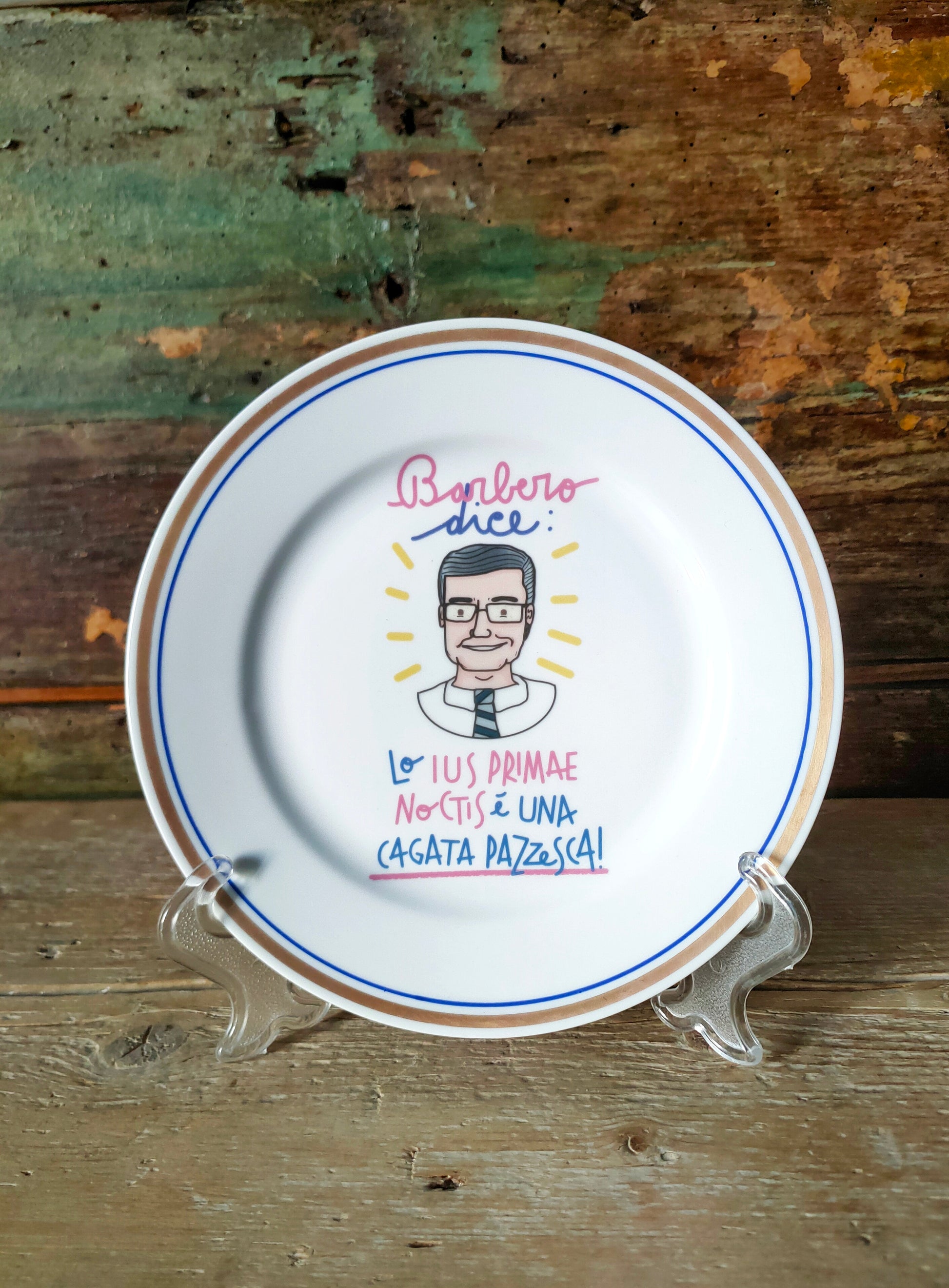 Piatto "Il Prof. Barbero" con Bordo Oro e Blu