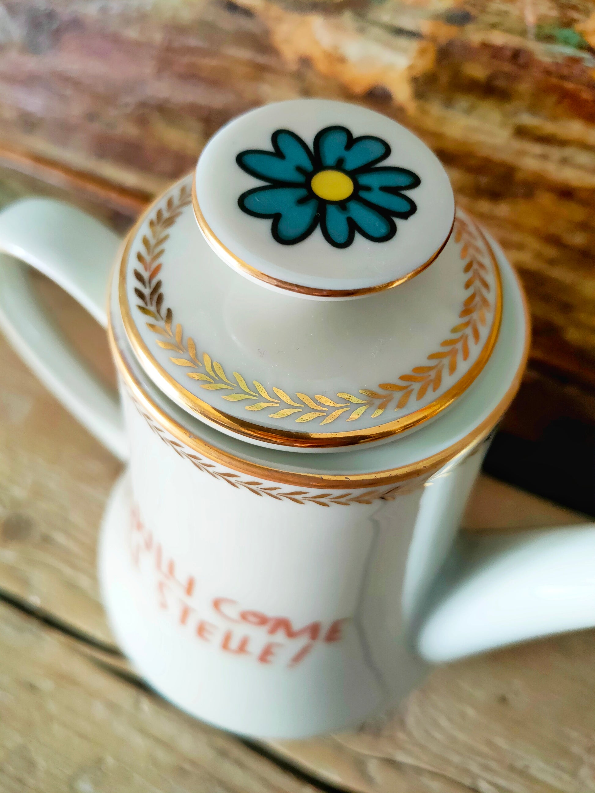 È alta 21 cm circa e larga 20 cm circa con maniglia e beccuccio compresi!