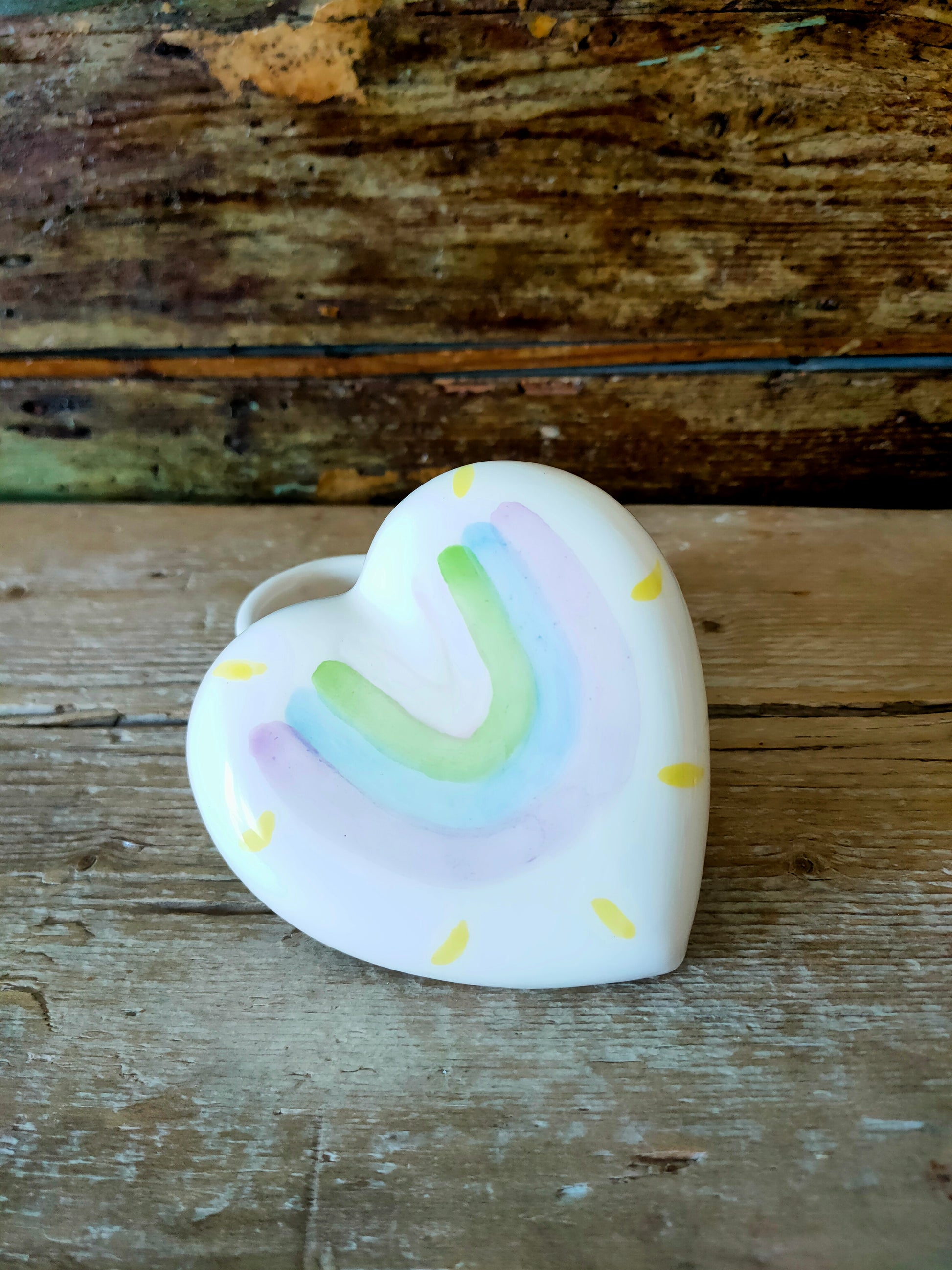 Portagioie del Cuore dipinto a mano, "Arcobaleno"