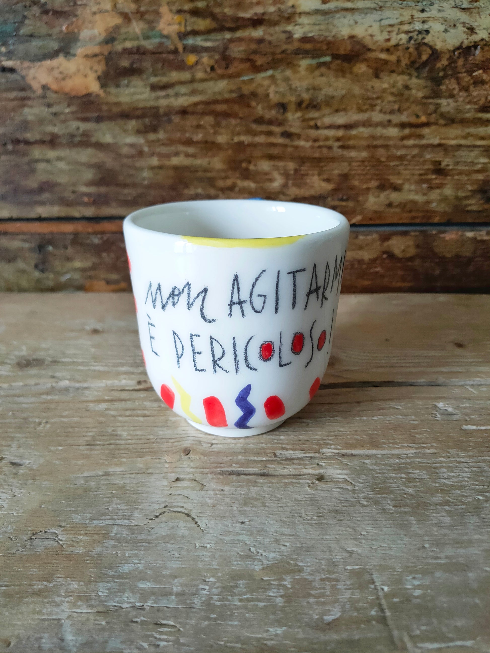 Tazza in Ceramica Dipinta a Mano "Non Agitarmi è Pericoloso"
