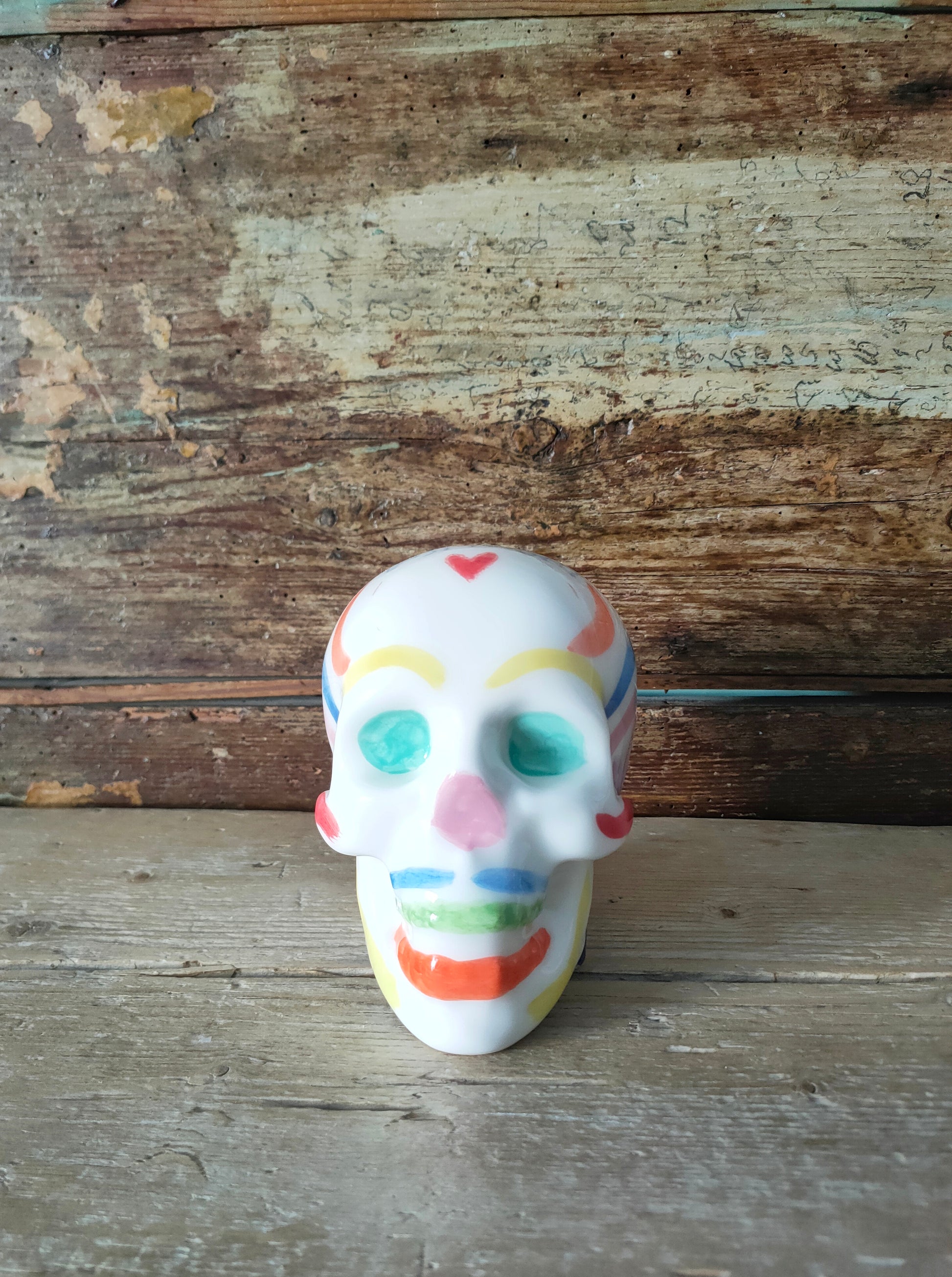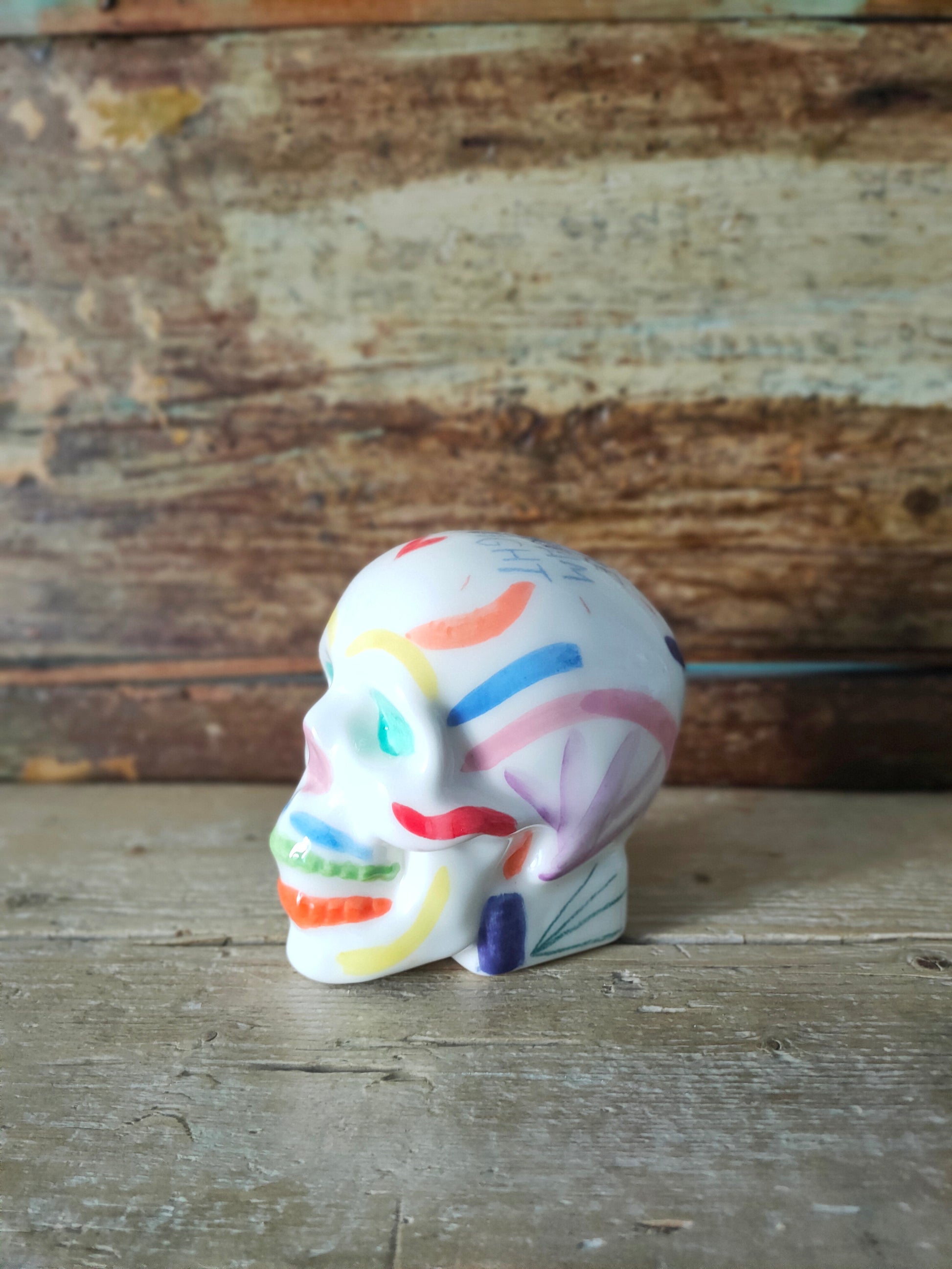 Si si si!!! Fluoriscilla ha creato la sua linea "calavera" di ceramica. Una serie di teschi che più che un'immagine macabra, sono un oggetto propiziatorio e di buon auspicio. I colori sgargianti cacciano le vibrazioni negative e attirano quelle positive! Da posizionare in casa come allegri suppellettili!!! COLLEZIONALI TUTTI!!