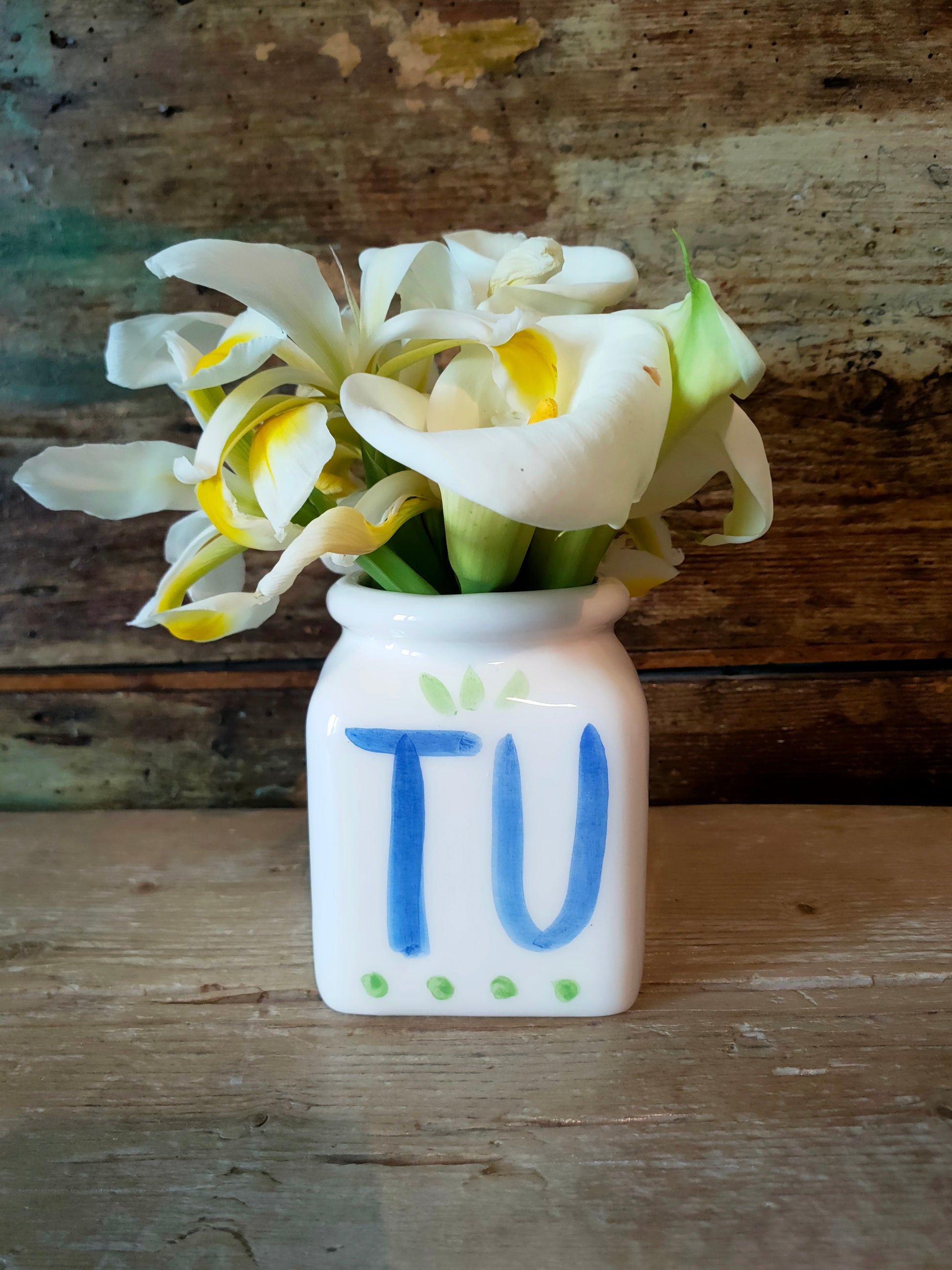 Vaso per "Fiori Belli" piccolo, scritta rossa, in Ceramica Dipinta a Mano.